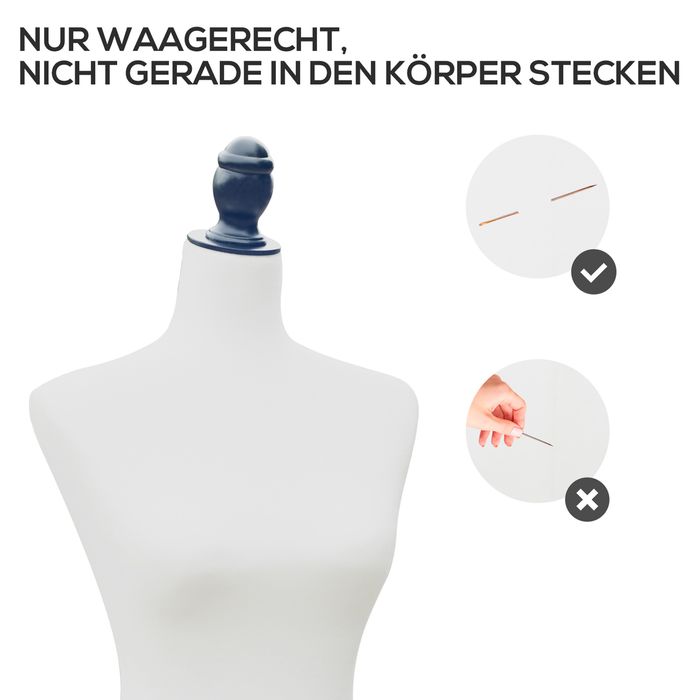 - Praktisches Design: Der Körper des Mannequins ist mit einem samtigen Stoff überzogen, der Nadeln sicher hält - ideal für professionelle Schneider und Kostümdesigner.