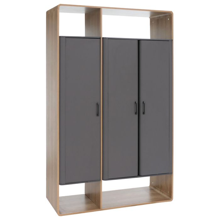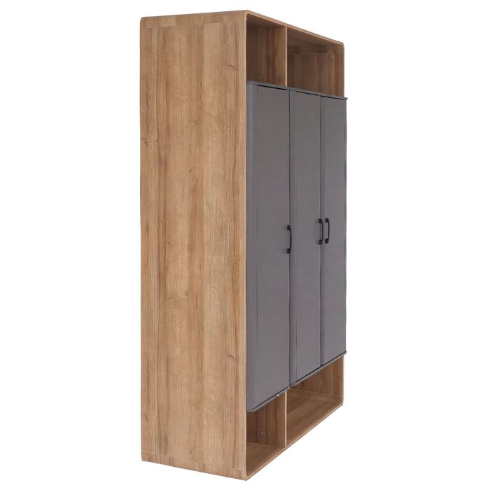 Garderobenschrank Kleiderschrank 3 Türen MDF 200x120x55cm, Rivera-Eiche-Optik, dunkelgrau
