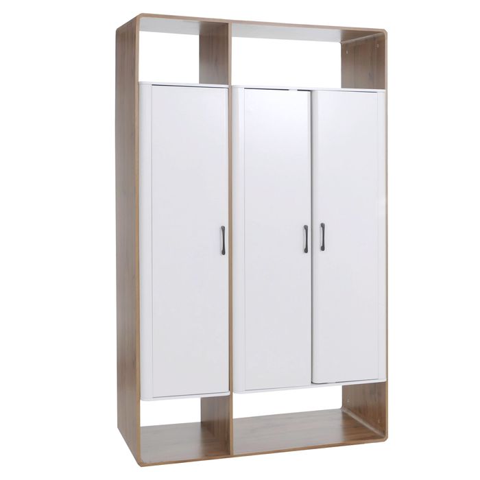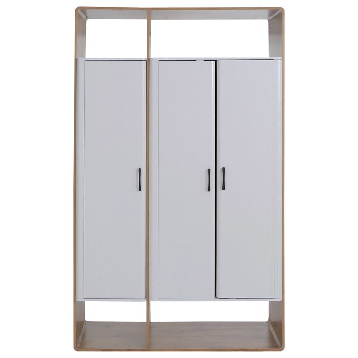 Hinter den drei Türen verbirgt sich grosszügiger Stauraum, der vielseitige Nutzungsmöglichkeiten bietet. Ob Jacken, Taschen, Schuhe oder andere Alltagsgegenstände – alles lässt sich ordentlich verstauen und bleibt dennoch schnell griffbereit. Dadurch eignet sich der Schrank ideal als Garderobenschrank im Eingangsbereich, als praktisches Stauraummöbel im Schlafzimmer oder als stilvolles Highboard im Wohnraum. Gefertigt aus robustem MDF überzeugt der Schrank P43 zudem durch seine stabile Konstruktion und langlebige Qualität. Das Möbelstück ist darauf ausgelegt, den Anforderungen des Alltags zuverlässig standzuhalten und gleichzeitig durch seine hochwertige Verarbeitung zu überzeugen. Geliefert wird der Schrank ohne Dekoration, sodass Sie ihn ganz nach Ihrem persönlichen Stil gestalten können.
