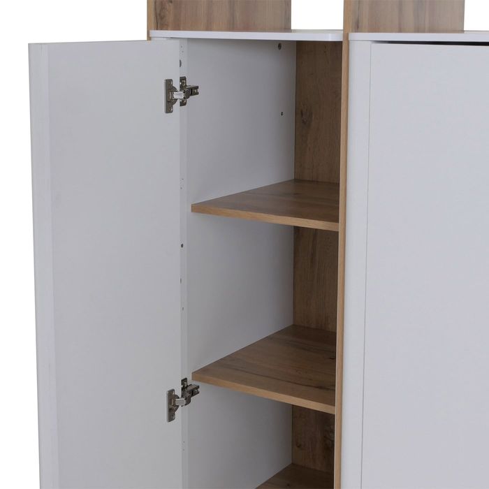 - Sie verfügt über fünf geräumige Staufächer für Kleidung, Accessoires oder Dokumente sowie vier offene Ablageflächen, auf denen Dekorationen, Bücher oder häufig genutzte Gegenstände griffbereit platziert werden können.