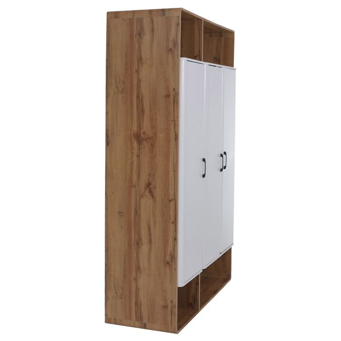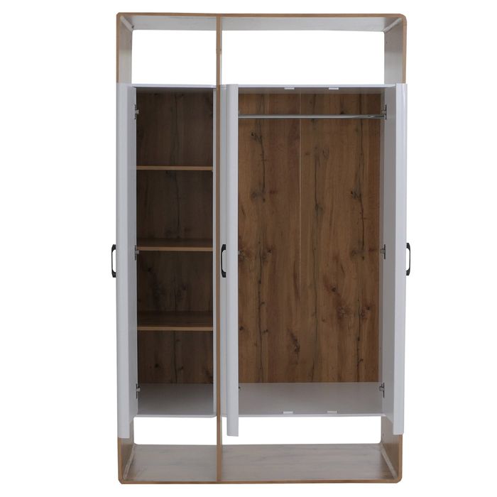 Garderobenschrank Kleiderschrank 3 Türen MDF 200x120x55cm, Wotan-Eiche-Optik, weiss