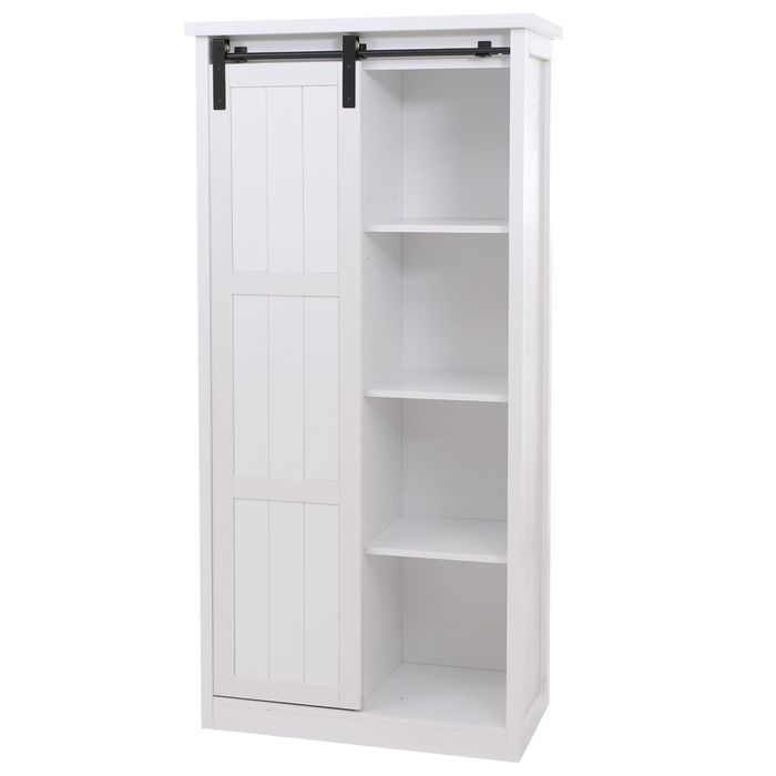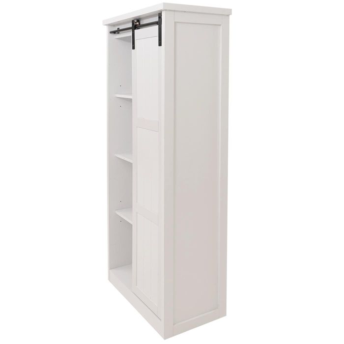 - Die Kommode verfügt über eine raffinierte Schiebetüre, die man individuell verschieben kann. Somit sind die Staufächer leicht erreichbar und der Schrank kann platzsparend aufgestellt werden.