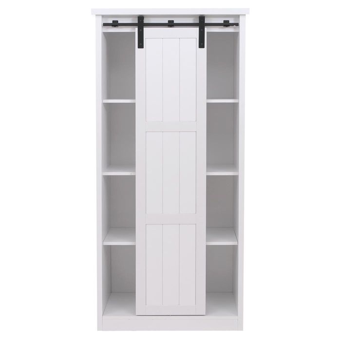 Dieser Schrank verfügt über 8 Fächer, die viel Stauraum für Kleidung, Bücher, Accessoires und andere Dinge bieten. Der Regalschrank ist ausserdem mit Kunststoffnoppen ausgestattet, die den Boden vor Kratzern und Beschädigungen schützen. Insgesamt ist dieser Schiebetürenschrank eine praktische und stilvolle Lösung für jeden Raum, der zusätzlichen Stauraum benötigt und lässt sich sehr gut mit den weiteren Möbeln aus dieser Serie K75 kombinieren.