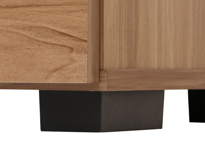 Korpus und Regalböden: Spanplatte (Gummibaumholz Stärke 15mm mit PU-Papierbeschichtung)
