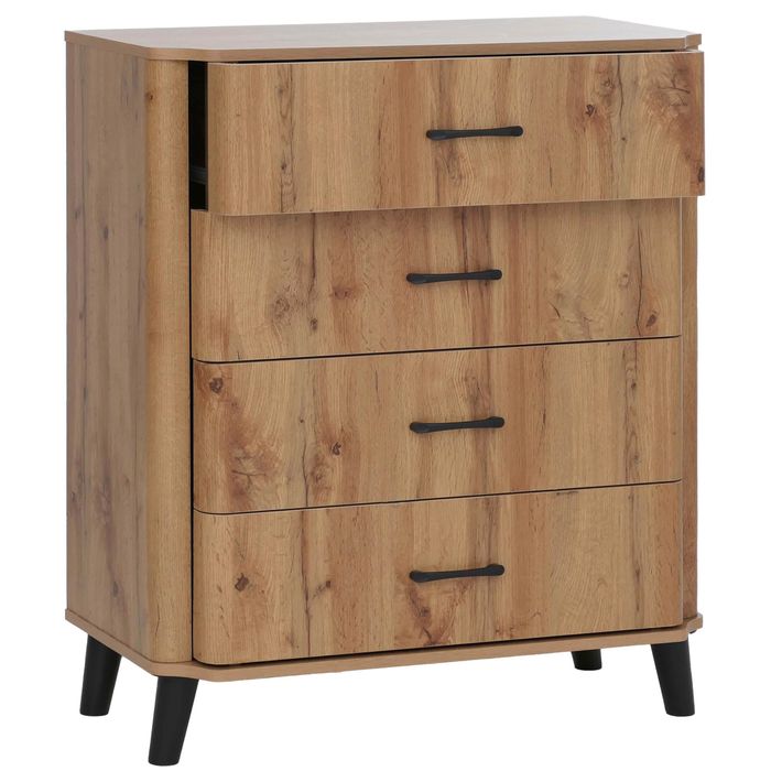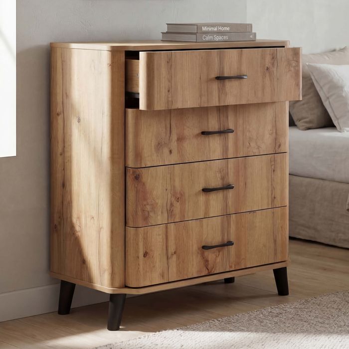 - Kompakte Kommode für Schlafzimmer, Flur oder Wohnzimmer mit vier geräumigen Schubladen für viel Stauraum. Ideal zur ordentlichen Aufbewahrung von Kleidung, Accessoires und Alltagsgegenständen.