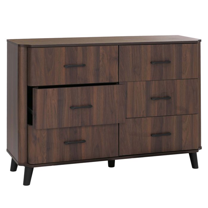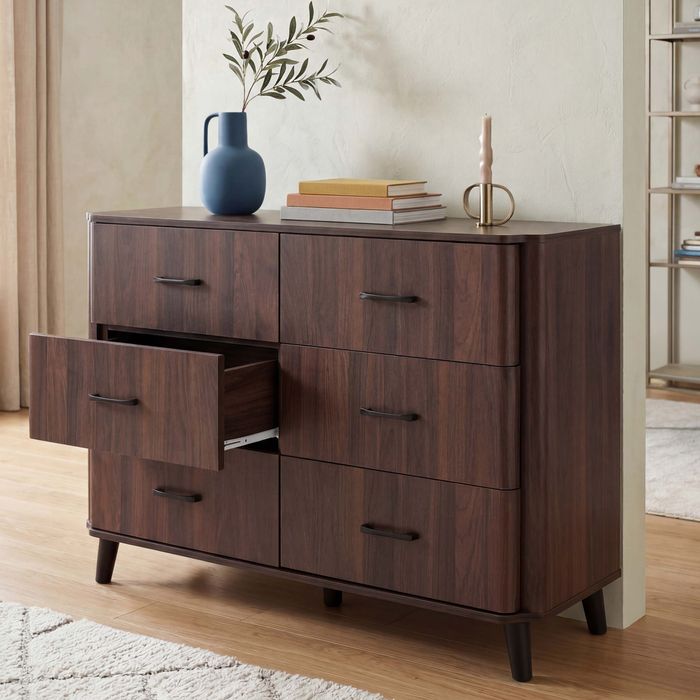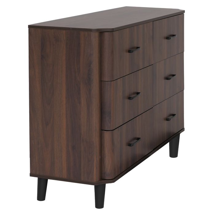 - Kompakte Kommode mit 6 geräumigen Schubladen für viel Stauraum. Ideal für Schlafzimmer, Flur oder Wohnzimmer. Organische Form mit abgerundeten Kanten und elegante Holzoptik sorgen für ein zeitloses Design.