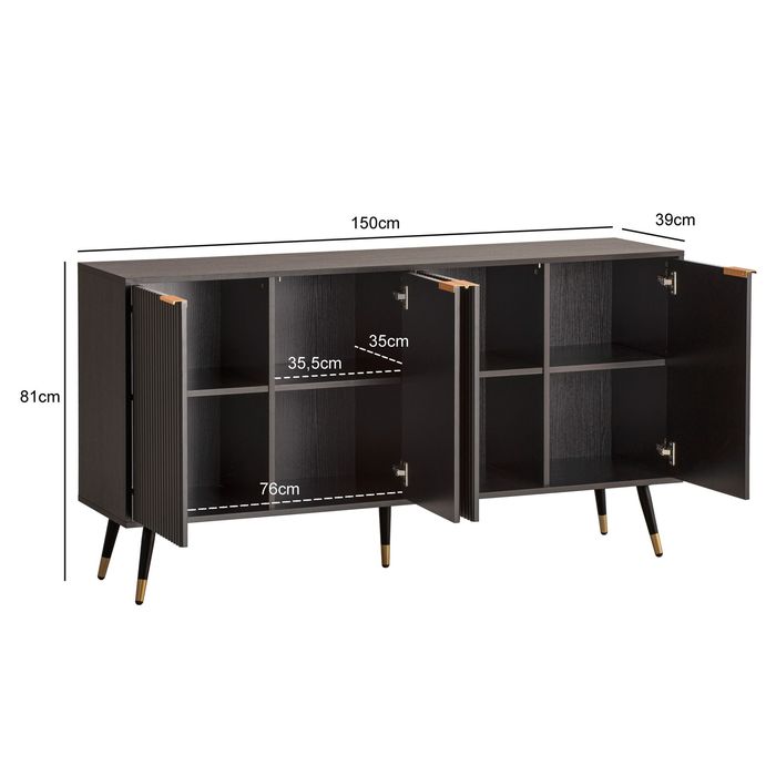 Sideboard Schwarz Eiche Dekor 150 cm Kommode Anrichte Standschrank