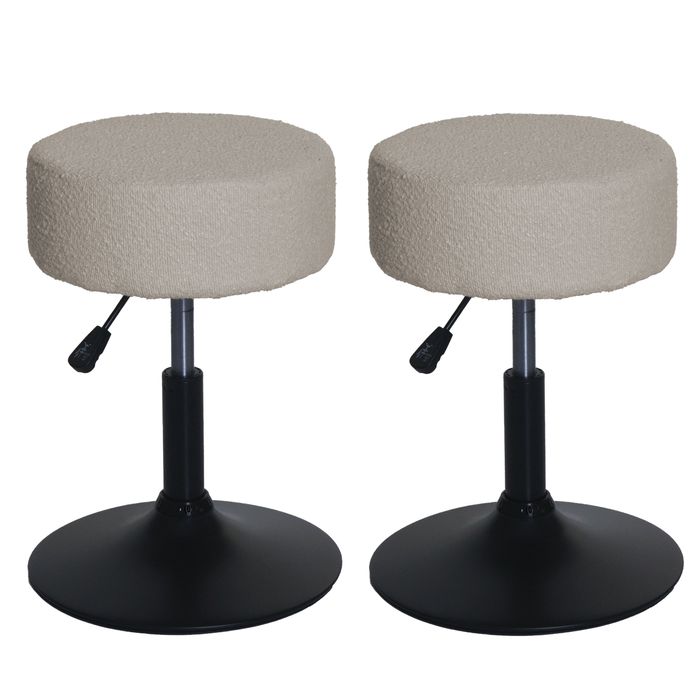 2er-Set Hocker HWC-C22, Sitzhocker Schminkhocker, höhenverstellbar drehbar Ø 37cm Stoff Bouclé 450g/m² FSC® - beige