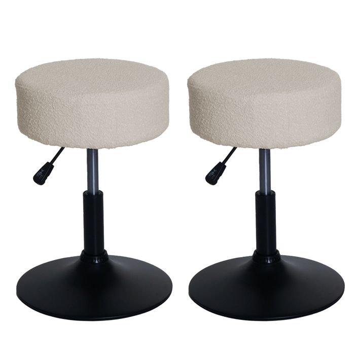 2er-Set Hocker HWC-C22, Sitzhocker Schminkhocker, höhenverstellbar drehbar Ø 37cm Stoff Bouclé 450g/m² FSC® - creme-weiss