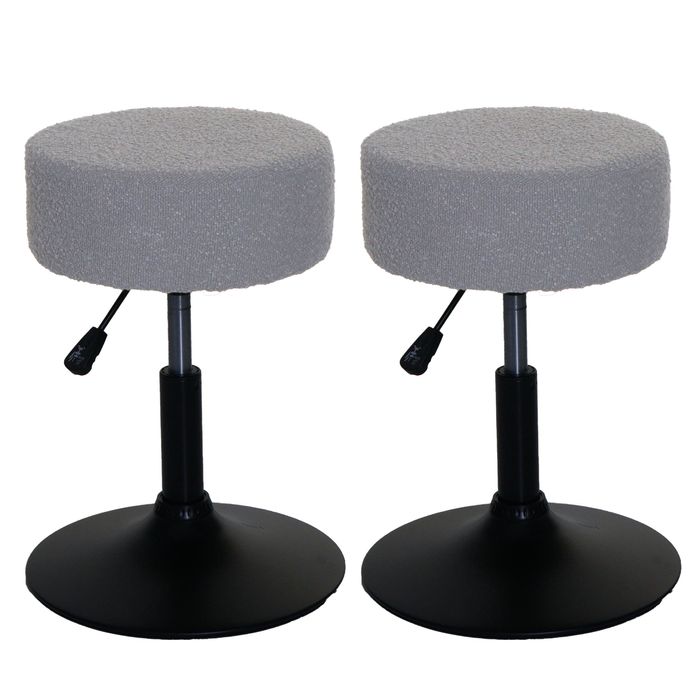 - Dieser Hocker überzeugt mit modernem Bouclé-Stoffbezug in hoher Qualität, 360°-Drehbarkeit und stufenloser Höhenverstellbarkeit. Sein Stahlgestell sorgt für Stabilität, während der gummierte Boden ein Verrutschen verhindert – sicher und stilvoll zugleich.