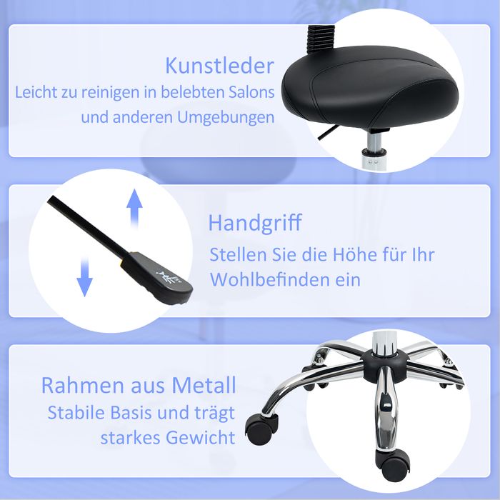 - ✔ Pflegeleichtes Kunstleder des Rollhockers vereinfacht die Wartung