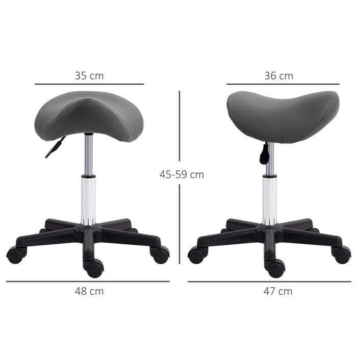 Rollhocker, sattelförmiger Sitz, höhenverstellbar, um 360° drehbar, Kunstleder, grau, 48 x 47 x 45-59 cm