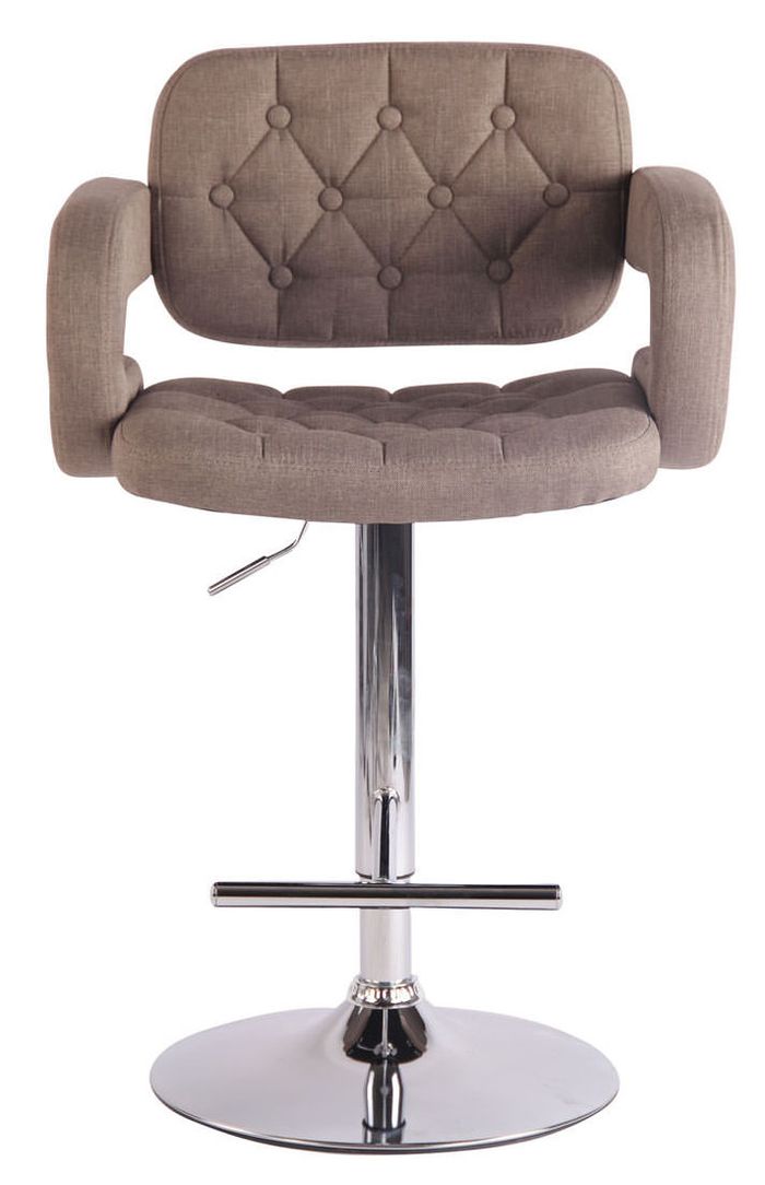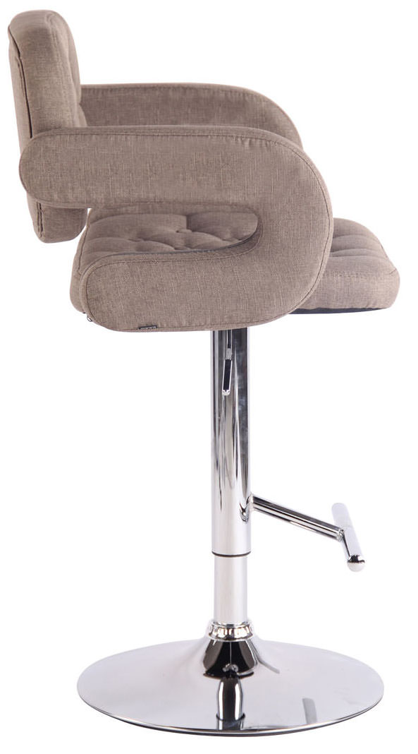 Der Barhocker hat einen sesselförmigen Sitz der mit einem Stoffbezug versehen ist. Der Sitz ist dick gepolstert und trägt zu einem bequemen Sitzkomfort bei. Die Sitzfläche ist um 360 Grad drehbar und lässt sich somit jeder gewünschten Sitzposition anpassen.