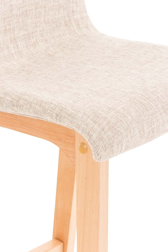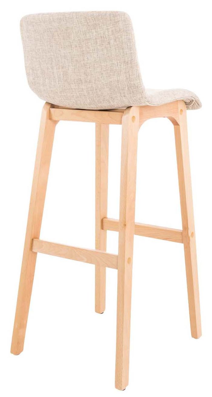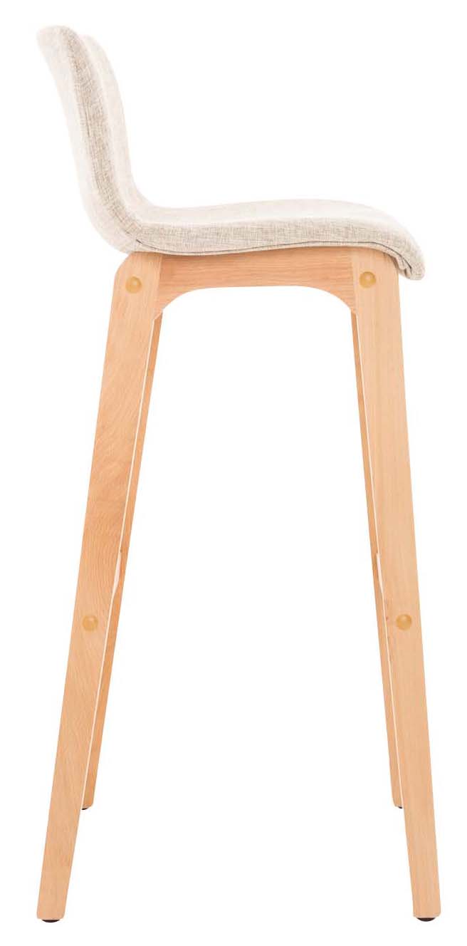 Die Sitzschalen besteht aus Stoff und sind pflegeleicht. Die angenehm hohen Rückenlehnen und die ergonomisch geformte Sitzfläche ermöglichen ein bequemes Sitzen auch über längere Zeit. Dabei steht der Thekenhocker standsicher auf einem Vierfuss-Gestell aus Holz und die mittig positionierten Querstreben sorgen für zusätzliche Stabilität und fungieren gleichzeitig als praktische Fussstütze. Ein rundum stilvoller Tresenhocker mit vielen Vorteilen und in vielen Farben.