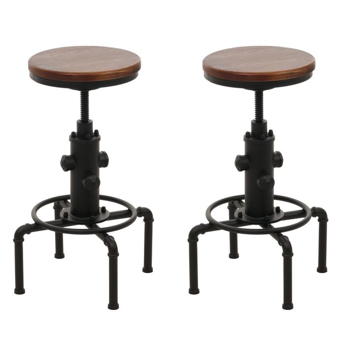 - Dieses 2er-Set Barhocker im eleganten Industriedesign bietet 360° Drehbarkeit und stufenlose Höhenverstellung für optimalen Komfort. Jeder Barstuhl ist bis 150 kg belastbar und mit einer Fussablage ausgestattet.