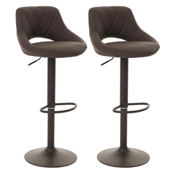 2er-Set Barhocker HWC-N64, Barstuhl Tresenhocker, Fussablage drehbar, Kunstleder Metall - braun