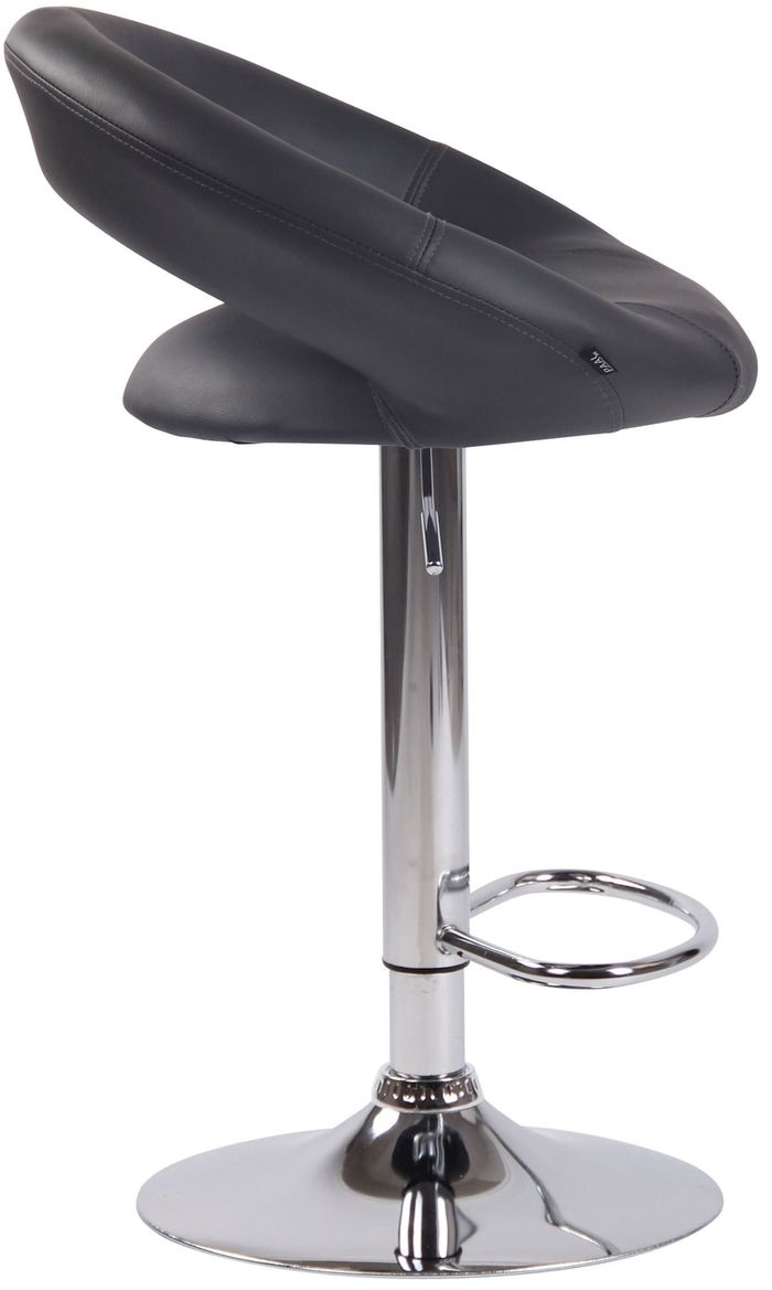 Diese Barhocker sind eine solide und schöne Sitzgelegenheit für den täglichen Gebrauch. Der Sitz ist mit einem pflegeleichten Kunstlederbezug versehen und besonders bequem gepolstert, die umlaufende Lehne sorgt für zusätzlichen Komfort. Die Thekenhocker sind mittels Gaslift höhenverstellbar sowie um 360° drehbar. Die angebrachte Fussstütze lässt sich synchron mit der Höhe der Sitzfläche einstellen, wodurch ein bequemes Sitzen über mehrere Stunden möglich ist. Der Trompetenfuss aus Metall ist mit einem Bodenschoner ausgestattet, wodurch Kratzer und Beschädigungen auf dem Boden verhindert werden.