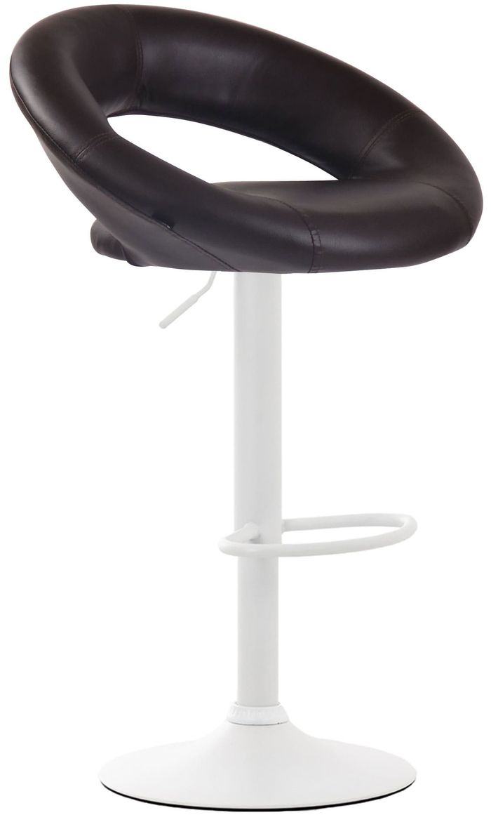 Diese Barhocker sind eine solide und schöne Sitzgelegenheit für den täglichen Gebrauch. Der Sitz ist mit einem pflegeleichten Kunstlederbezug versehen und besonders bequem gepolstert, die umlaufende Lehne sorgt für zusätzlichen Komfort. Die Thekenhocker sind mittels Gaslift höhenverstellbar sowie um 360° drehbar. Die angebrachte Fussstütze lässt sich synchron mit der Höhe der Sitzfläche einstellen, wodurch ein bequemes Sitzen über mehrere Stunden möglich ist. Der Trompetenfuss aus Metall ist mit einem Bodenschoner ausgestattet, wodurch Kratzer und Beschädigungen auf dem Boden verhindert werden.