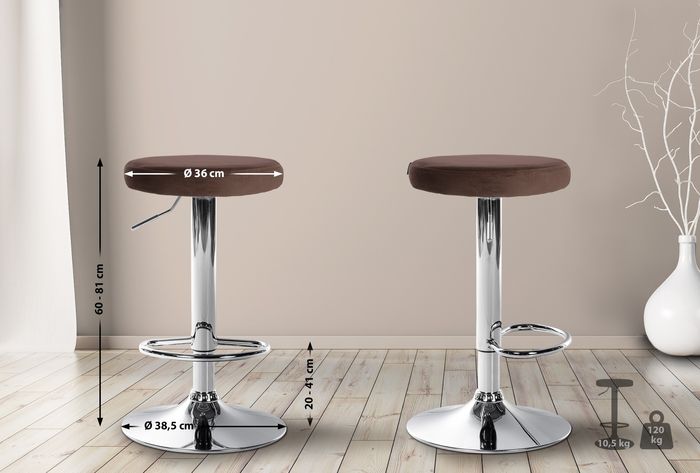 Sein robustes Gestell, wahlweise aus Metall in Chromoptik, Mattschwarz oder Mattweiss, mit einer runden Bodenplatte, gewährleistet Stabilität und Langlebigkeit. Die integrierte Fussablage sorgt für zusätzlichen Komfort und eine entspannte Sitzhaltung. Unter dem Trompetenfuss befinden sich Bodenschoner, die ein Verkratzen des Bodens verhindern. Zudem ermöglichen pflegeleichte Oberflächen eine mühelose Reinigung und Pflege dieses Hockers.
