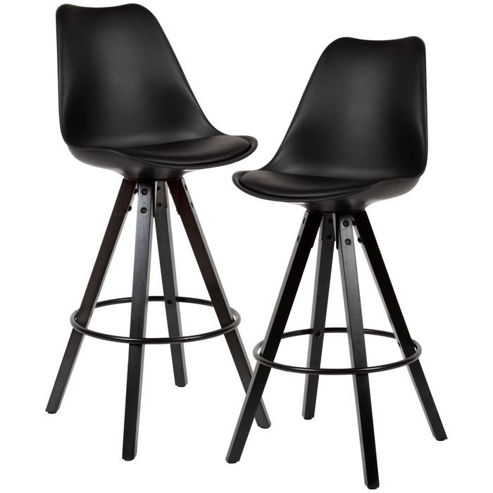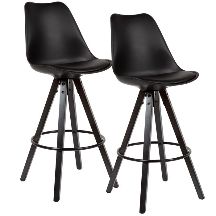 2er Set Barhocker Schwarz Kunstleder / Massivholz