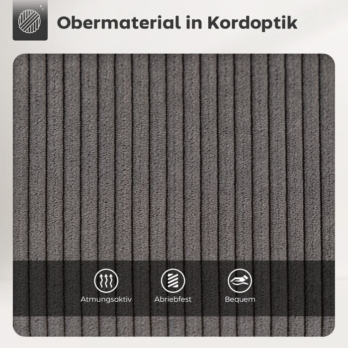 - ✔ Materialien: Cordstoff (100 % Polyester), Stahl, Schaumstoff, Sperrholz