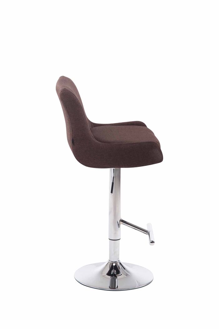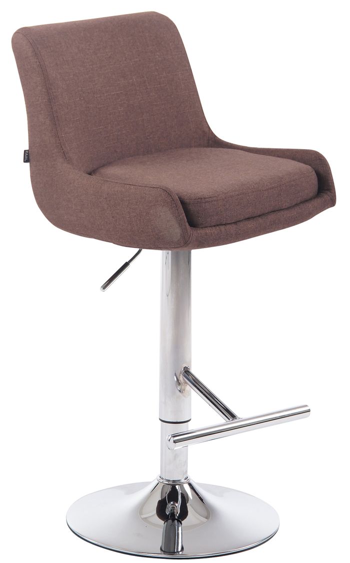 Dieser Hocker besticht durch sein stillvolles Design. Der Sitz ist mit einem pflegeleichten Stoffbezug versehen. Mithilfe des Gaslifts lässt sich dieses Modell in der Wunschhöhe stufenlos einstellen, sodass er für jede Thekenhöhe bestens geeignet ist. Die Fussstütze, die einen sehr guten Sitzkomfort gewährleistet, ist synchron mit der Höhe des Sitzes verstellbar. Die Sitzfläche ist mit der Fussablage um 360° drehbar. Das Gestell besteht wahlweise aus Metall in Chromoptik oder schwarzem Metall. Zudem befinden sich unter dem Trompetenfuss Bodenschoner, die ein Verkratzen des Bodens verhindern.