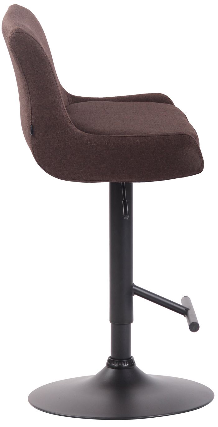Dieser Hocker besticht durch sein stillvolles Design. Der Sitz ist mit einem pflegeleichten Stoffbezug versehen. Mithilfe des Gaslifts lässt sich dieses Modell in der Wunschhöhe stufenlos einstellen, sodass er für jede Thekenhöhe bestens geeignet ist. Die Fussstütze, die einen sehr guten Sitzkomfort gewährleistet, ist synchron mit der Höhe des Sitzes verstellbar. Die Sitzfläche ist mit der Fussablage um 360° drehbar. Das Gestell besteht wahlweise aus Metall in Chromoptik oder schwarzem Metall. Zudem befinden sich unter dem Trompetenfuss Bodenschoner, die ein Verkratzen des Bodens verhindern.