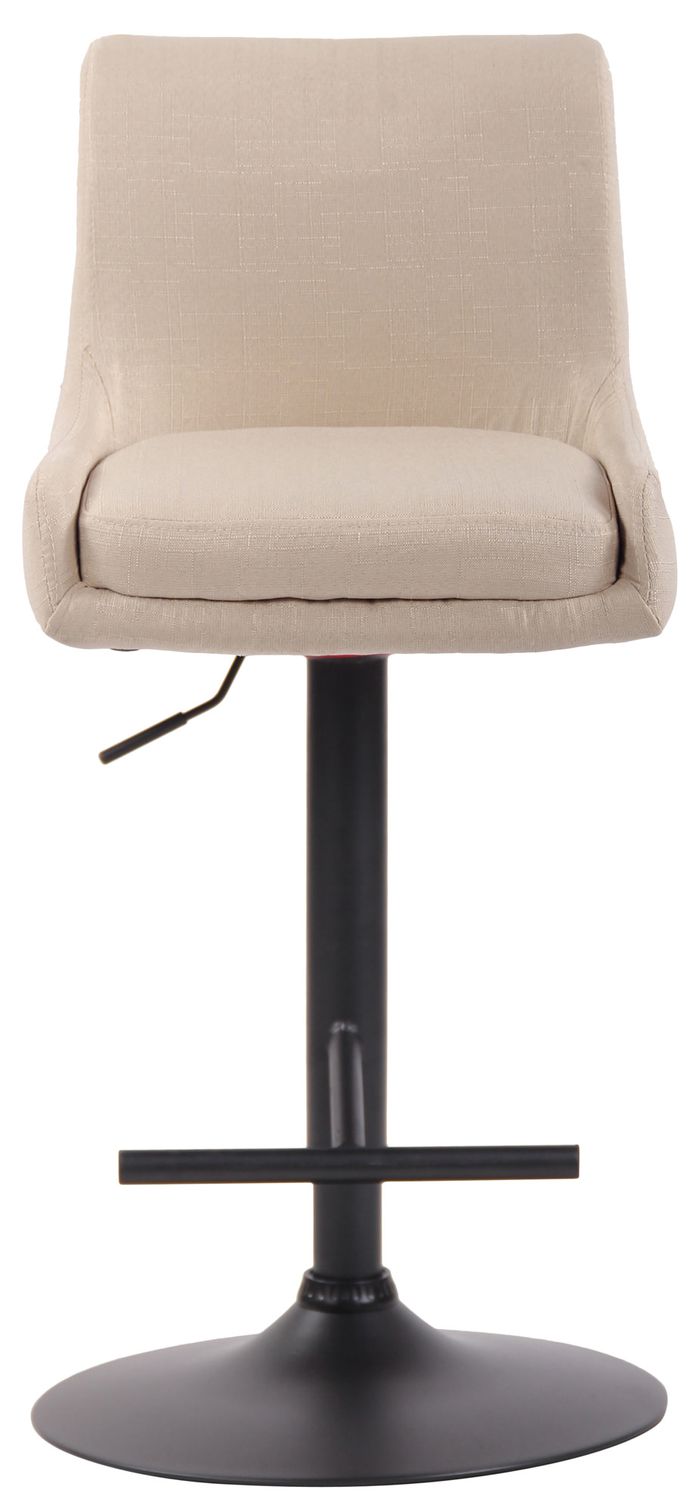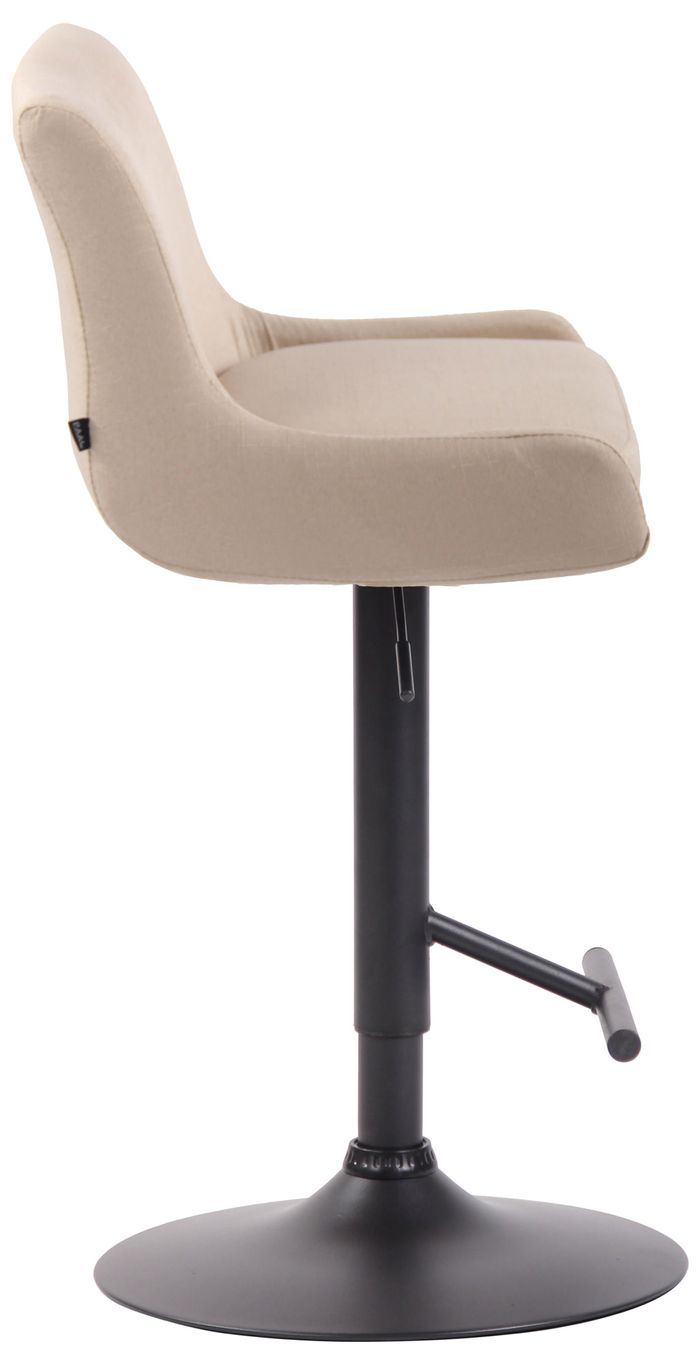 Dieser Hocker besticht durch sein stillvolles Design. Der Sitz ist mit einem pflegeleichten Stoffbezug versehen. Mithilfe des Gaslifts lässt sich dieses Modell in der Wunschhöhe stufenlos einstellen, sodass er für jede Thekenhöhe bestens geeignet ist. Die Fussstütze, die einen sehr guten Sitzkomfort gewährleistet, ist synchron mit der Höhe des Sitzes verstellbar. Die Sitzfläche ist mit der Fussablage um 360° drehbar. Das Gestell besteht wahlweise aus Metall in Chromoptik oder schwarzem Metall. Zudem befinden sich unter dem Trompetenfuss Bodenschoner, die ein Verkratzen des Bodens verhindern.