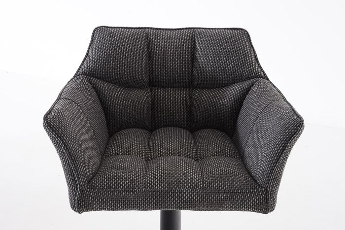 Geschwungene Formen und modische Farben machen den Barhocker Damaso zu einem optischen Highlight an jeder Theke. Der sesselförmige Sitz überzeugt neben seiner modernen Optik durch seinen hohen Komfort, der durch umlaufend erhöhte Armlehnen und einer gepolsterten Rückenlehne gegeben ist. Der feine Stoffbezug steht in unterschiedlichen Farben zur Auswahl und bietet dadurch jede gestalterische Freiheit. Das kompakte Untergestell ist mit einer leichtgängigen Drehmechanik ausgestattet sowie durch einfache Hebelbedienung stufenlos höhenverstellbar. In der Mitte des Gestells befindet sich eine Fussablage die für eine korrekte Sitzhaltung wichtig ist. Materialzusammensetzung Sitzbezug: Stoff (100% Polyester)