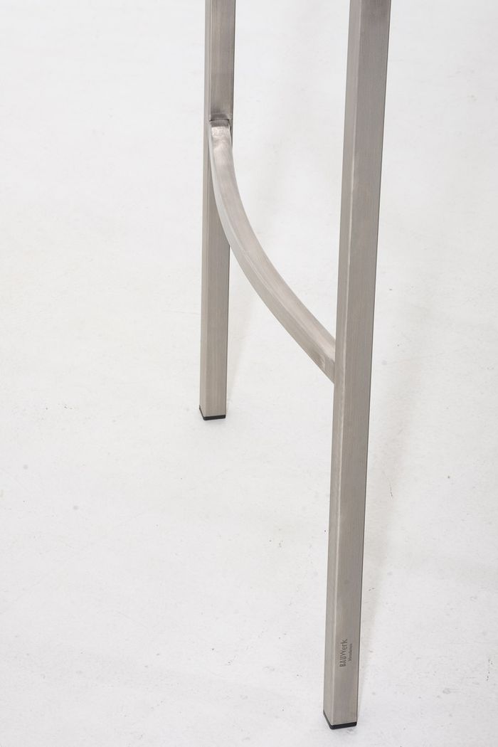 Der pflegeleichte Stoffbezug steht in unterschiedlichen Farben zur Auswahl und bietet dadurch jede gestalterische Freiheit. Ein robustes und langlebiges 4-Fussgestell sorgt für einen sicheren Stand und in der Mitte des Gestells befindet sich eine Fussablage, die für eine korrekte Sitzhaltung wichtig ist. Erhältlich ist unser Thekenhocker in Edelstahl oder in schwarzlackiertem/weisslackiertem Metall.