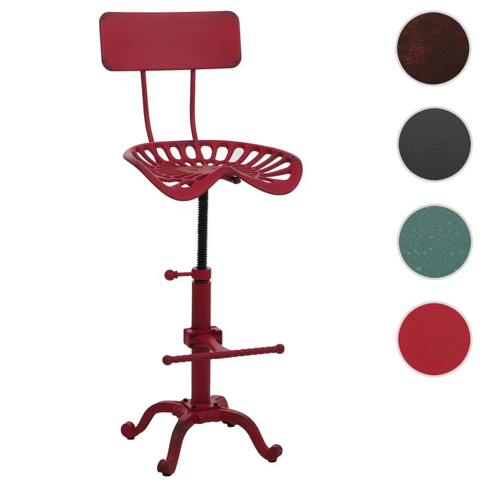 Barhocker HWC-N26, höhenverstellbar drehbar Fussablage Industrial Metall – rot