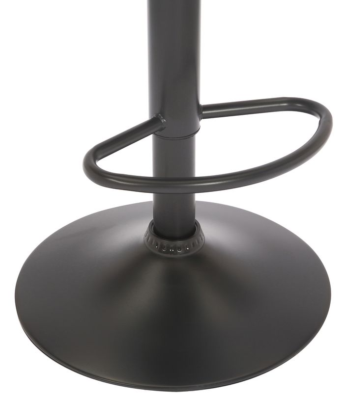 Dieser Barhocker verleiht jedem Raum einen exklusiven Look und besticht nicht nur durch seine hervorragenden Sitzeigenschaften, sondern auch durch sein modernes Design. Der Sitz ist mit einem pflegeleichten Samtbezug versehen. Mithilfe des Gaslifts lässt sich dieses Modell in der Wunschhöhe stufenlos einstellen, sodass er für jede Thekenhöhe bestens geeignet ist. Die Fussstütze, die einen sehr guten Sitzkomfort gewährleistet, ist synchron mit der Höhe des Sitzes verstellbar. Die Sitzfläche ist mit der Fussablage um 360° drehbar. Der Trompetenfuss aus schwarzem Metall hat an der Unterseite Bodenschoner, die ein Verkratzen der Oberflächen verhindern.
