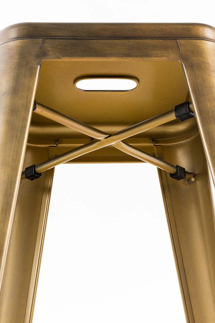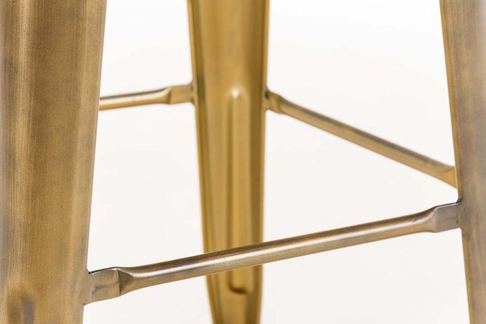 Dieser Barhocker aus pulverbeschichtetem Metall zeigt immer wahrhaftige Standfestigkeit. Sowohl zwischen den Standbeinen als auch unter der Sitzfläche befinden sich Querstreben, welche für eine hohe Stabilität sorgen - Erstere dienen zugleich als bequeme Fussstütze.