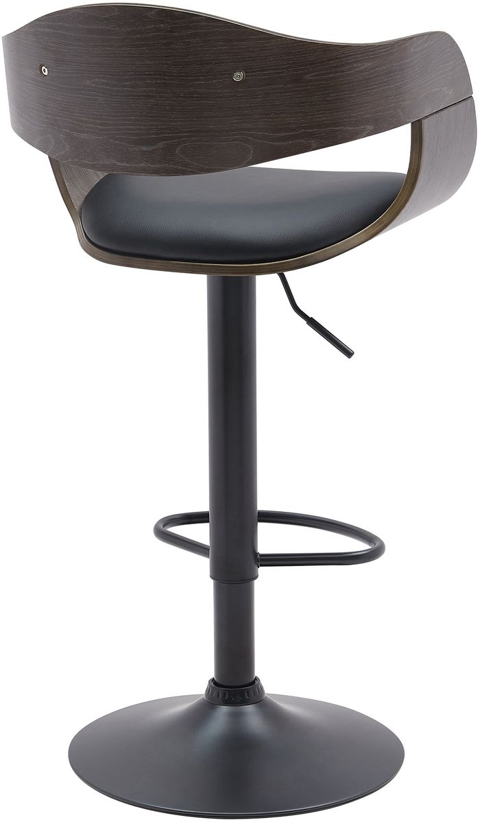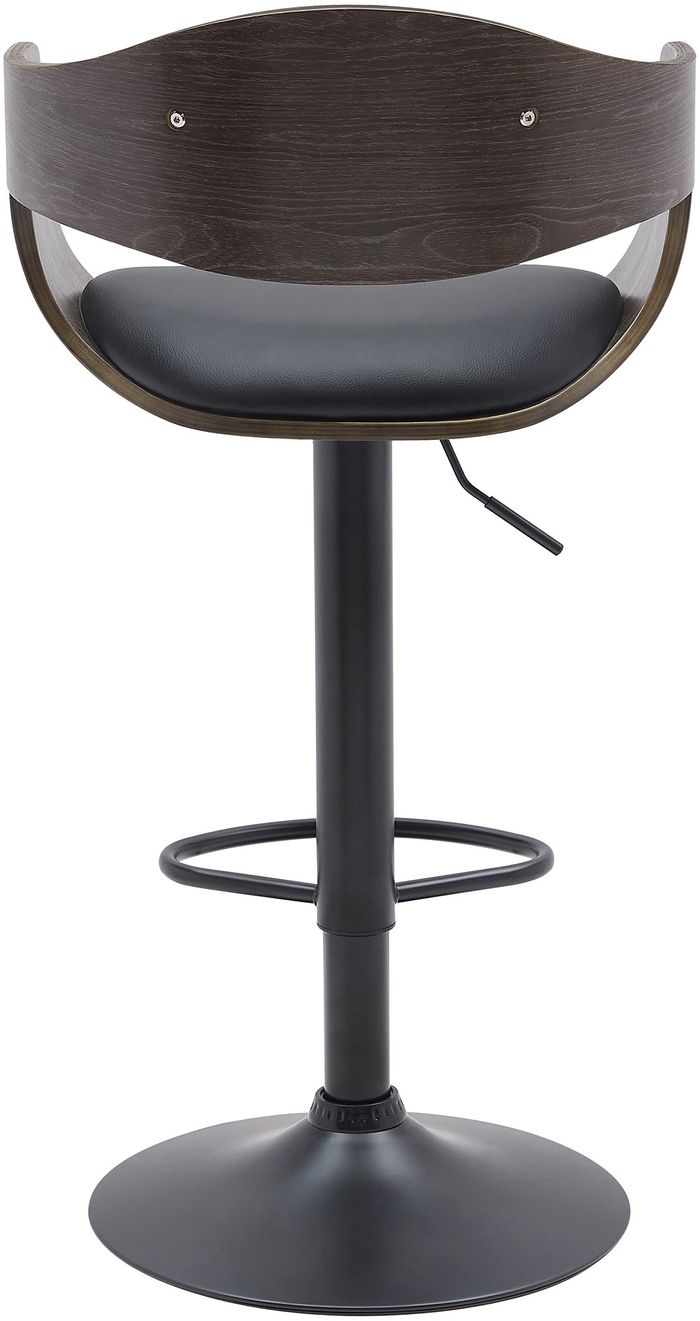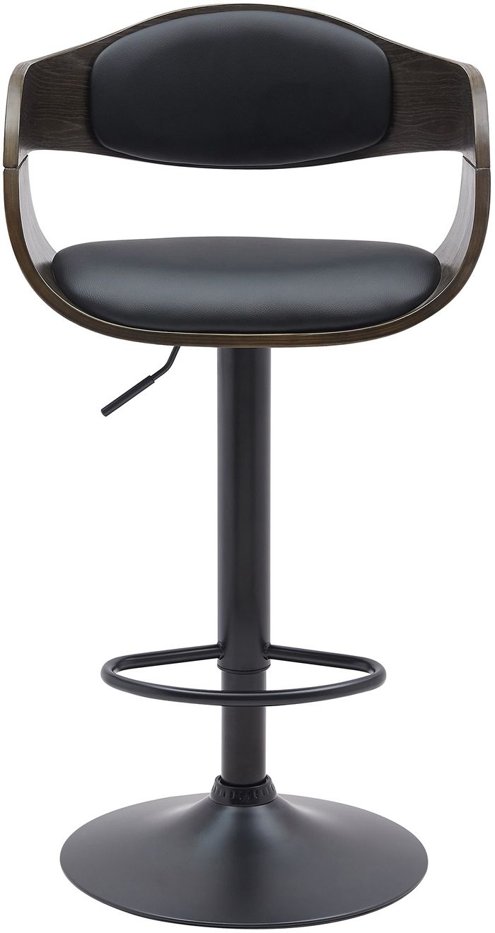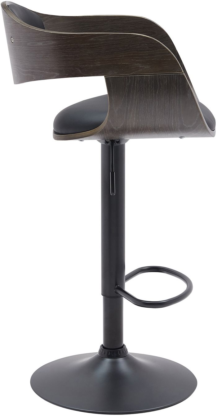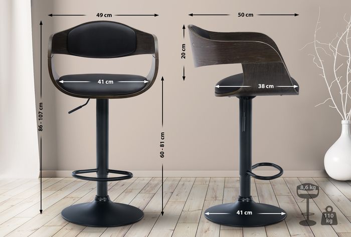 Der Barstuhl steht auf einem robusten Gestell aus Metall in matt-schwarz. Mittels eines Gaslifts ist der Barhocker stufenlos höhenverstellbar und kann so individuell jeder Körpergrösse und Thekenhöhe angepasst werden. Die integrierte Fussstütze trägt zu einer geraden und aufrechten Sitzposition bei.
