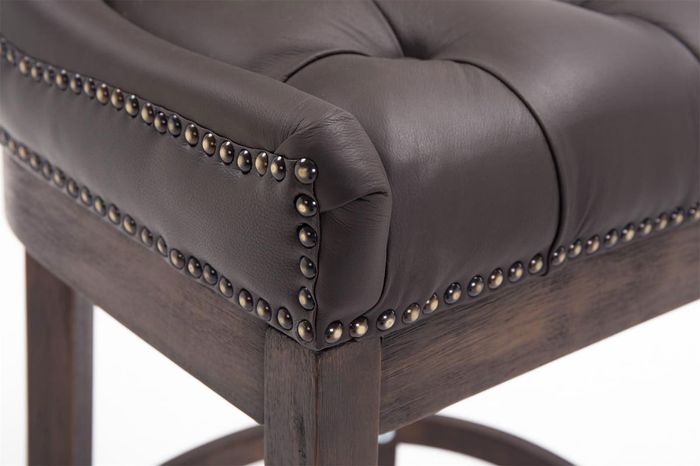 Der Barhocker Lakewood ist ein aus Kautschuk-Holz gefertigter Holzbarhocker. Er besticht nicht nur durch seine hochwertige Verarbeitung - auch optisch ist der Lakewood ein echter Hingucker. Der gepolsterte Echtledersitz bietet höchsten Sitzkomfort und das harmonische Zusammenspiel von Sitz und Holzgestell wirkt sehr extravagant und verleiht jeder Theke eine besondere Note. Besonders auffallend und stilvoll zugleich sind die Zierknöpfe aus Messing, die aussen entlang der Naht verlaufen. Auch die Zierknöpfe und -nähte auf der Sitzfläche veredeln diesen Barhocker und machen ihn zu etwas ganz besonderem. Die hohe Rückenlehne und die Fussstütze ermöglichen ein bequemes Sitzen über Stunden hinweg. Überzeugen Sie sich selbst vom eleganten und komfortablen Barhocker Lakewood.