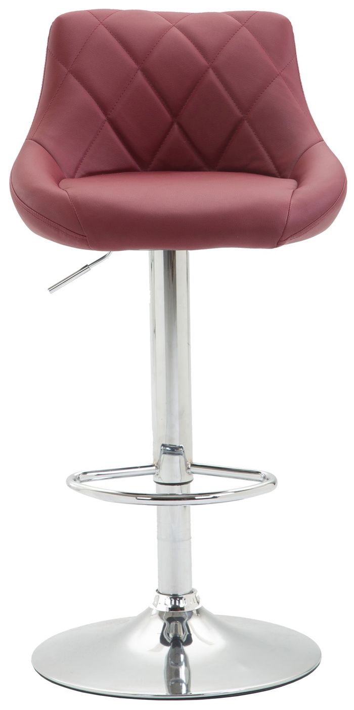 Dieser Hocker besticht durch sein stillvolles Design. Der Sitz ist mit Kunstleder bezogen und mit aufwendigen Ziernähten verarbeitet. Mithilfe des Gaslifts lässt sich dieses Modell in der Wunschhöhe stufenlos einstellen, sodass er für jede Thekenhöhe bestens geeignet ist. Die Fussstütze, die einen sehr guten Sitzkomfort gewährleistet, ist synchron mit der Höhe des Sitzes verstellbar. Die Sitzfläche ist mit der Fussablage um 360° drehbar. Das Gestell besteht aus Metall in Chromoptik, unter dem Trompetenfuss befinden sich Bodenschoner, die ein Verkratzen des Bodens verhindern.