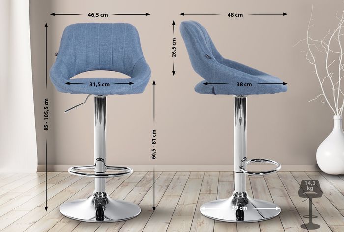 Barhocker Milet Stoff chrom, blau