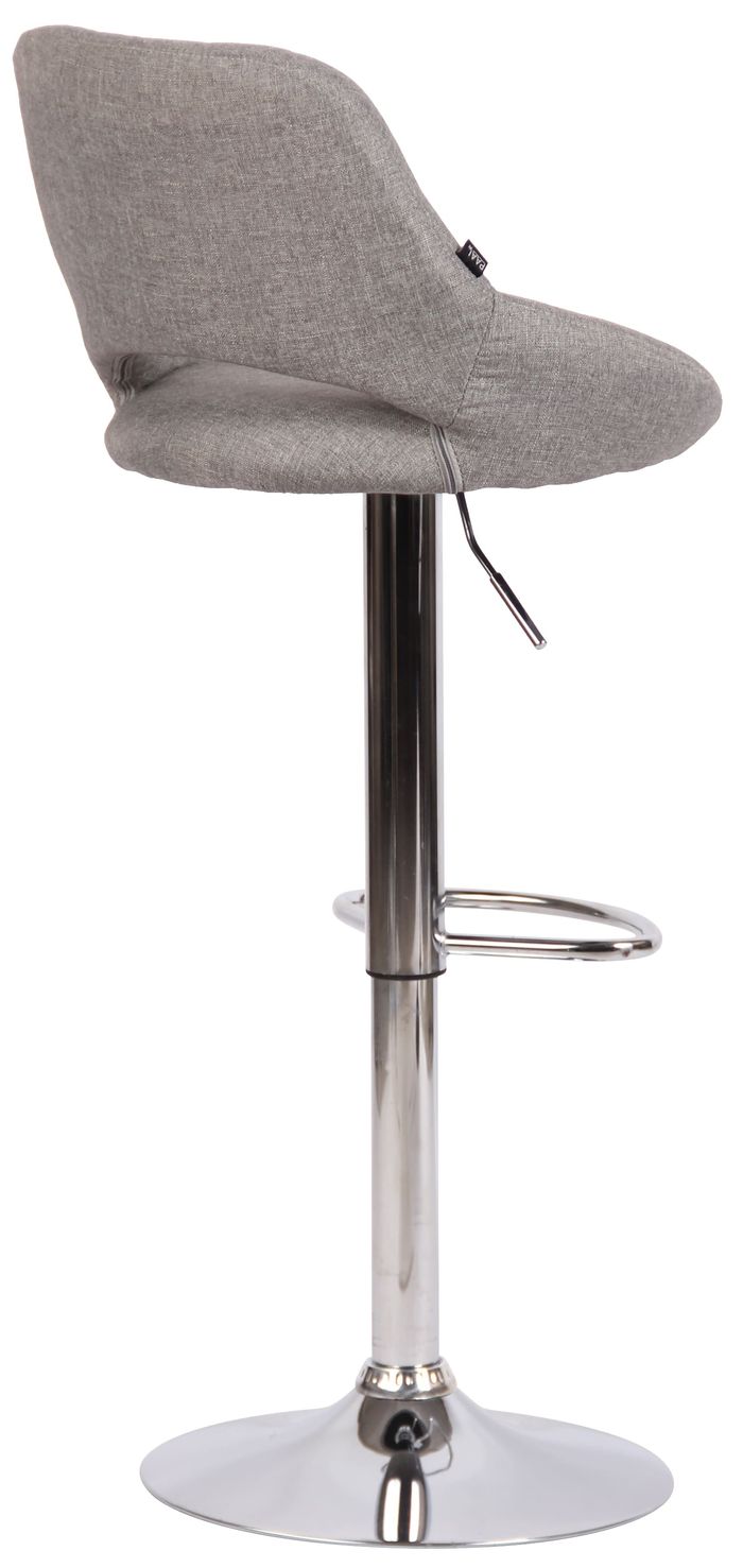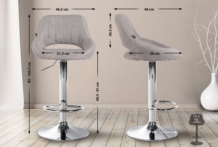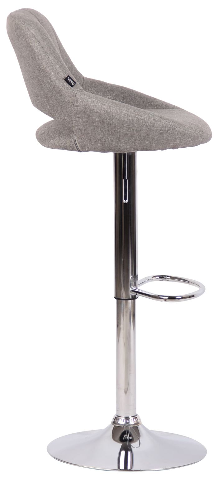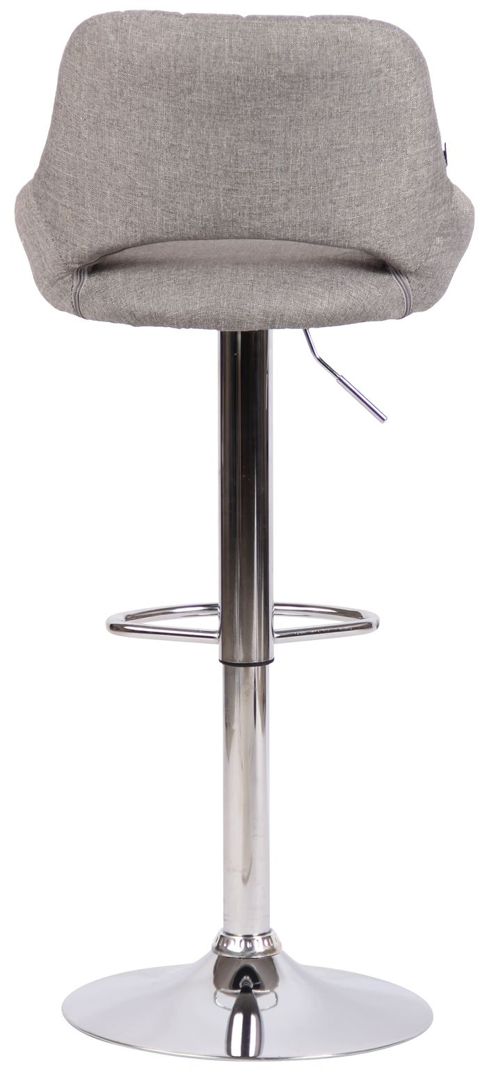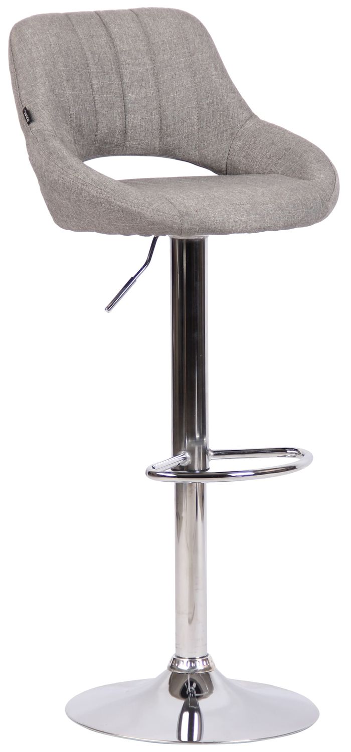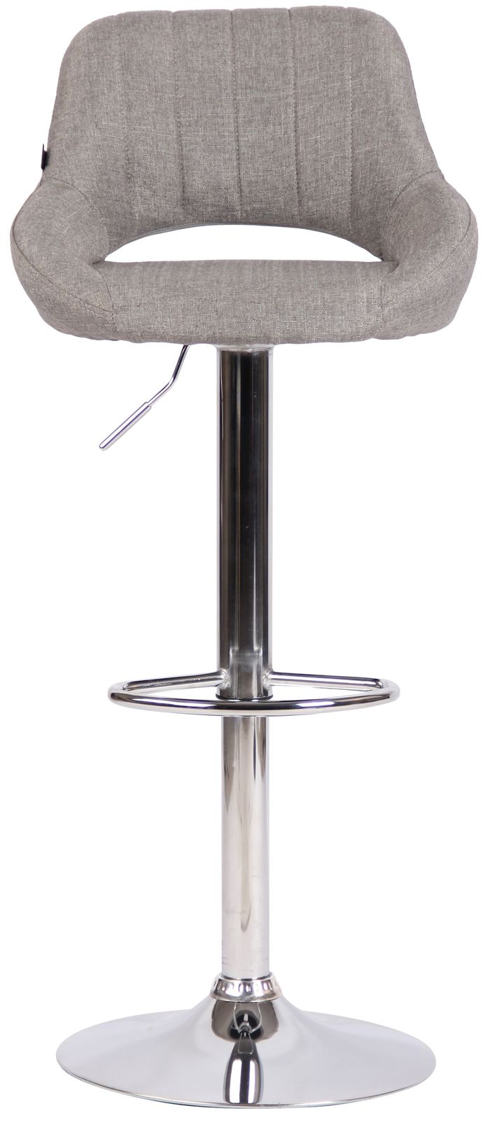Dieser Barhocker verleiht jedem Raum einen exklusiven Look und besticht nicht nur durch seine hervorragenden Sitzeigenschaften, sondern auch durch sein modernes Design. Der Sitz ist mit einem pflegeleichten Stoffbezug versehen. Mithilfe des Gaslifts lässt sich dieses Modell in der Wunschhöhe stufenlos einstellen, sodass er für jede Thekenhöhe bestens geeignet ist. Die Fussstütze, die einen sehr guten Sitzkomfort gewährleistet, ist synchron mit der Höhe des Sitzes verstellbar. Die Sitzfläche ist mit der Fussablage um 360° drehbar. Der Trompetenfuss hat an der Unterseite Bodenschoner, die ein Verkratzen der Oberflächen verhindern.