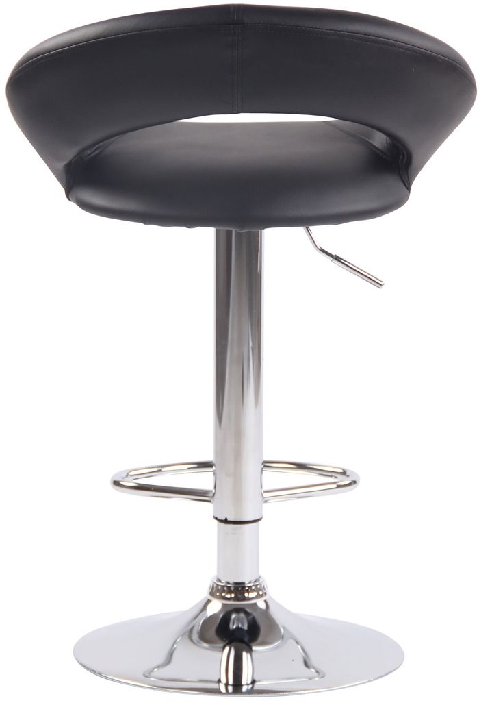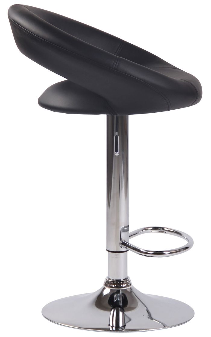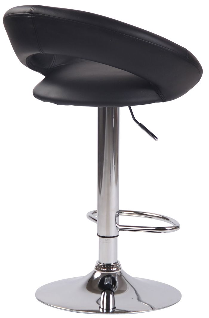 Dieser Barhocker ist eine solide und schöne Sitzgelegenheit für den täglichen Gebrauch. Der Sitz ist mit einem pflegeleichten Kunstlederbezug versehen und besonders bequem gepolstert, die umlaufende Lehne sorgt für zusätzlichen Komfort. Der Thekenhocker ist mittels Gaslift höhenverstellbar sowie um 360° drehbar. Die angebrachte Fussstütze lässt sich synchron mit der Höhe der Sitzfläche einstellen, wodurch ein bequemes Sitzen über mehrere Stunden möglich ist. Der Trompetenfuss aus Metall ist mit einem Bodenschoner ausgestattet, wodurch Kratzer und Beschädigungen auf dem Boden verhindert werden.