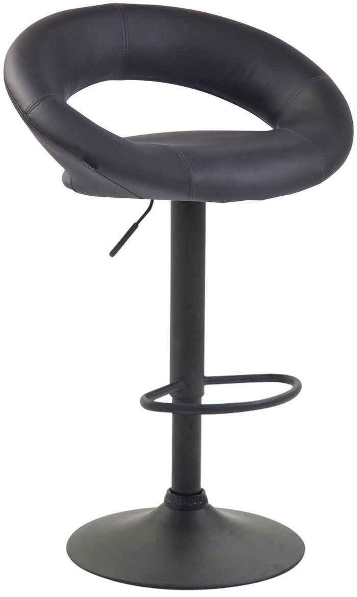 Dieser Barhocker ist eine solide und schöne Sitzgelegenheit für den täglichen Gebrauch. Der Sitz ist mit einem pflegeleichten Kunstlederbezug versehen und besonders bequem gepolstert, die umlaufende Lehne sorgt für zusätzlichen Komfort. Der Thekenhocker ist mittels Gaslift höhenverstellbar sowie um 360° drehbar. Die angebrachte Fussstütze lässt sich synchron mit der Höhe der Sitzfläche einstellen, wodurch ein bequemes Sitzen über mehrere Stunden möglich ist. Der Trompetenfuss aus Metall ist mit einem Bodenschoner ausgestattet, wodurch Kratzer und Beschädigungen auf dem Boden verhindert werden.