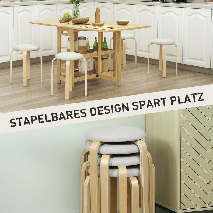 - Stark und stabil: Mit vier Beinen aus Birken-Sperrholz gefertigt, trägt jeder dieser runde Hocker mühelos bis zu 120 kg. Die abgerundeten, gratfreien Kanten schützen Ihre Haut, und die rutschfesten Filzfüsse verhindern das Rutschen und schützen Ihre Böden vor Kratzern.