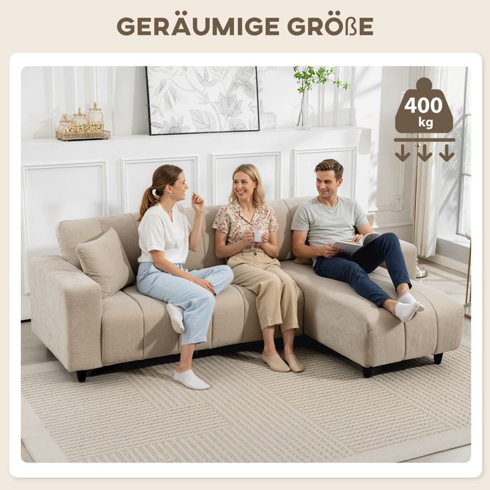 Ecksofa, L-Form, flexible Chaiselongue, 3-Sitzer, Metallrahmen, Beige