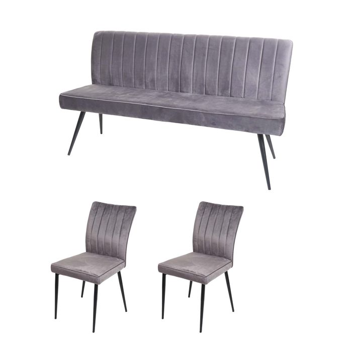 Esszimmer-Set HWC-K16, 2er-Set Stuhl+Sitzbank Esszimmergruppe Sitzgruppe Esszimmergarnitur, Samt Metall - dunkelgrau