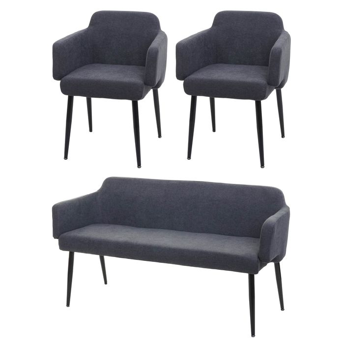 Esszimmer-Set HWC-L13, 2er-Set Stuhl+Sitzbank Esszimmergruppe Sitzgruppe Esszimmergarnitur, Stoff/Textil - anthrazit