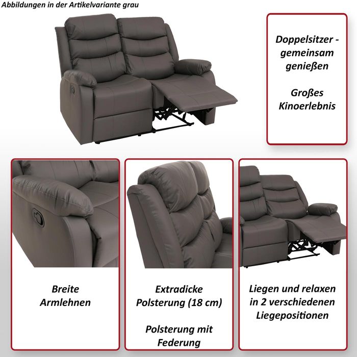 - Dieser Zweisitzer ist dank der dicken Polsterung äusserst bequem und eine echte Bereicherung für jedes Heimkino. Durch die verstellbaren Rückenlehne und Fussstütze können Sie zwischen verschiedenen Stufen wählen und entspannt liegen.