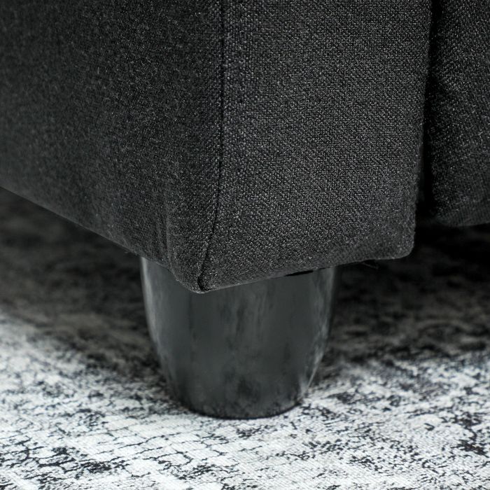 Relaxsessel, verstellbar 135°, ausziehbare Fussstütze, gepolsterte Lehnen, Leinen-Polyester, Schwarz