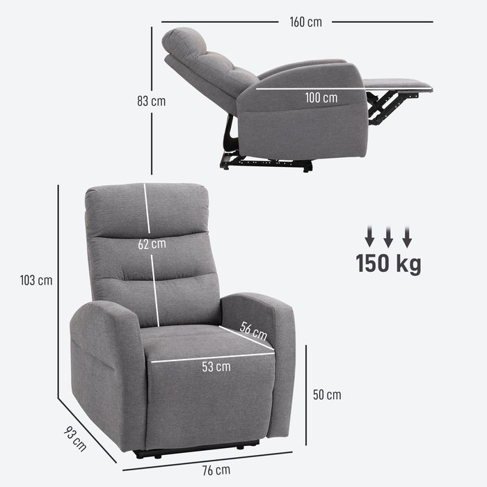 - Produktinformationen des Ruhesessels: Gesamtabmessungen: (Aufrecht) 76B x 93T x 103H cm. (Zurückgelehnt) 76B x 160T x 83H cm. Belastbarkeit: 150 kg. Der Aufbau des Relaxsessels ist in nur 15 Minuten ganz ohne Hilfe möglich – einfach und schnell.