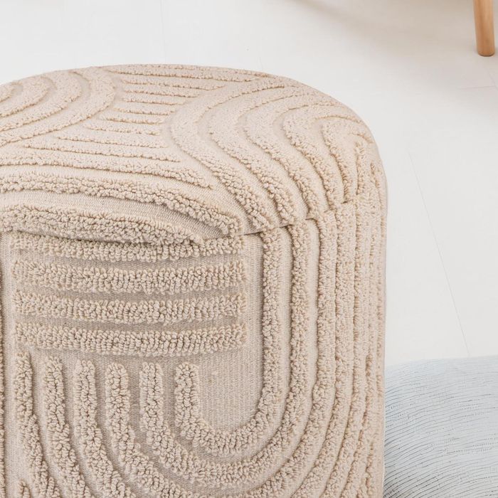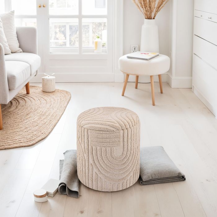 - Runder Sitzhocker mit Stauraum im modernen Boho-Stil