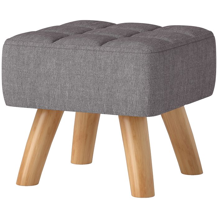 Fusshocker mit Polsterung, Leinenoptik, Holzbeine, bis 110 kg belastbar, Grau