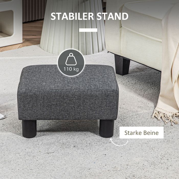 Fusshocker, Sitzhocker mit leinenartigem Stoffbezug, Schaumstoff-Füllung, Kunststoffbeine, für verschiedene Räume, Grau
